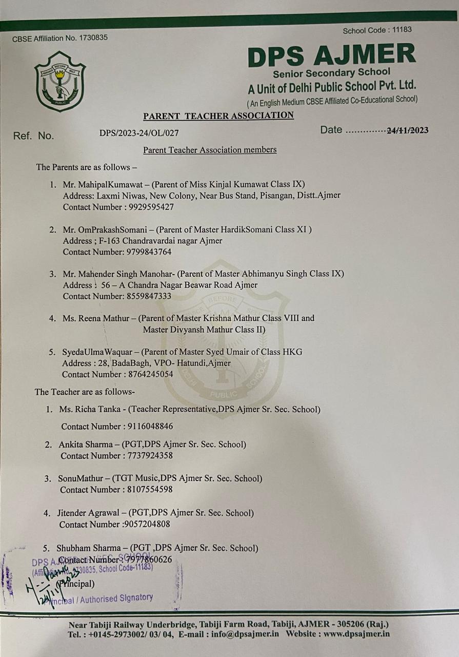 LIST OF PARENTS TEACHERS ASSOCIATION (PTA) MEMBERS :